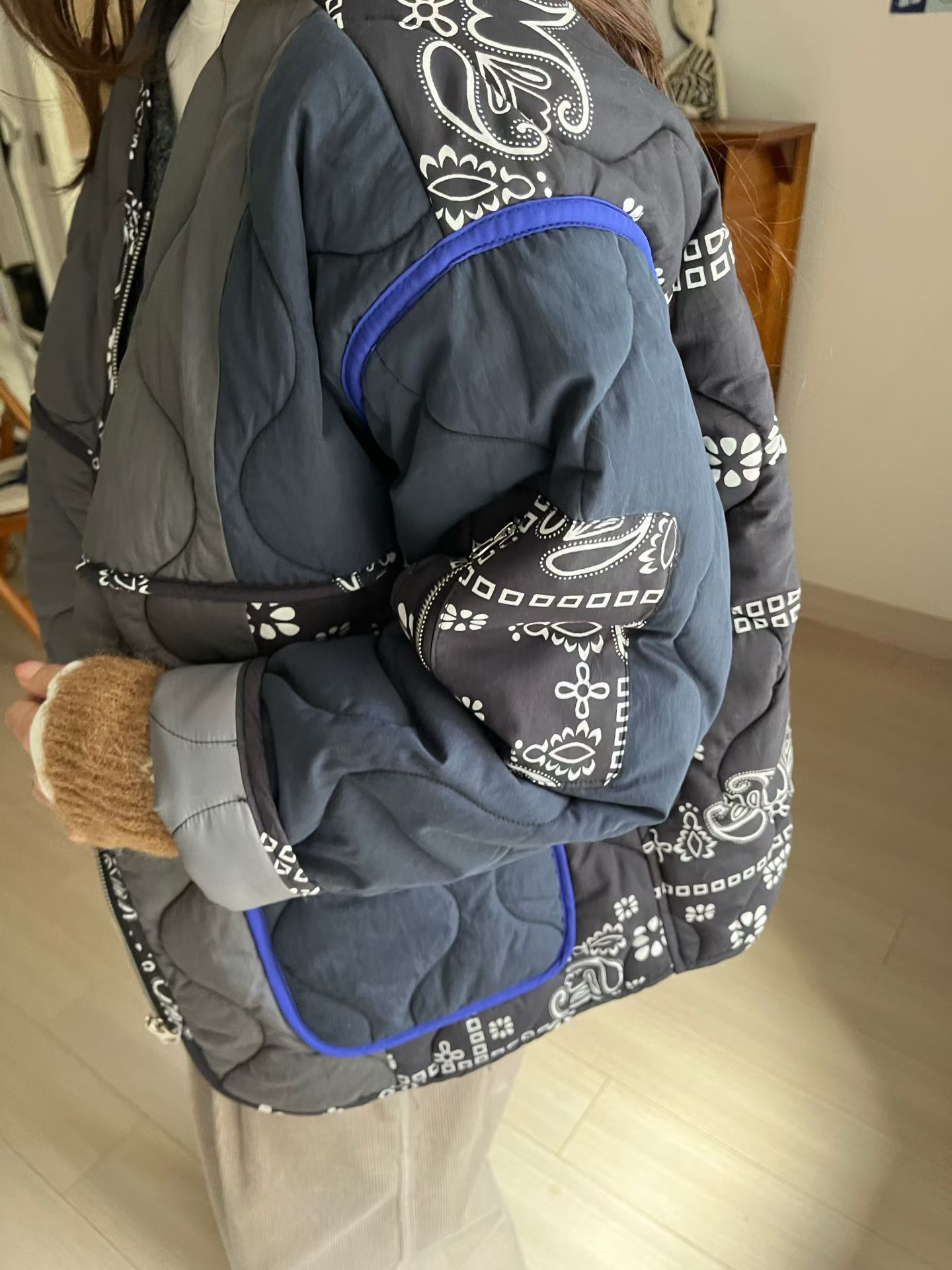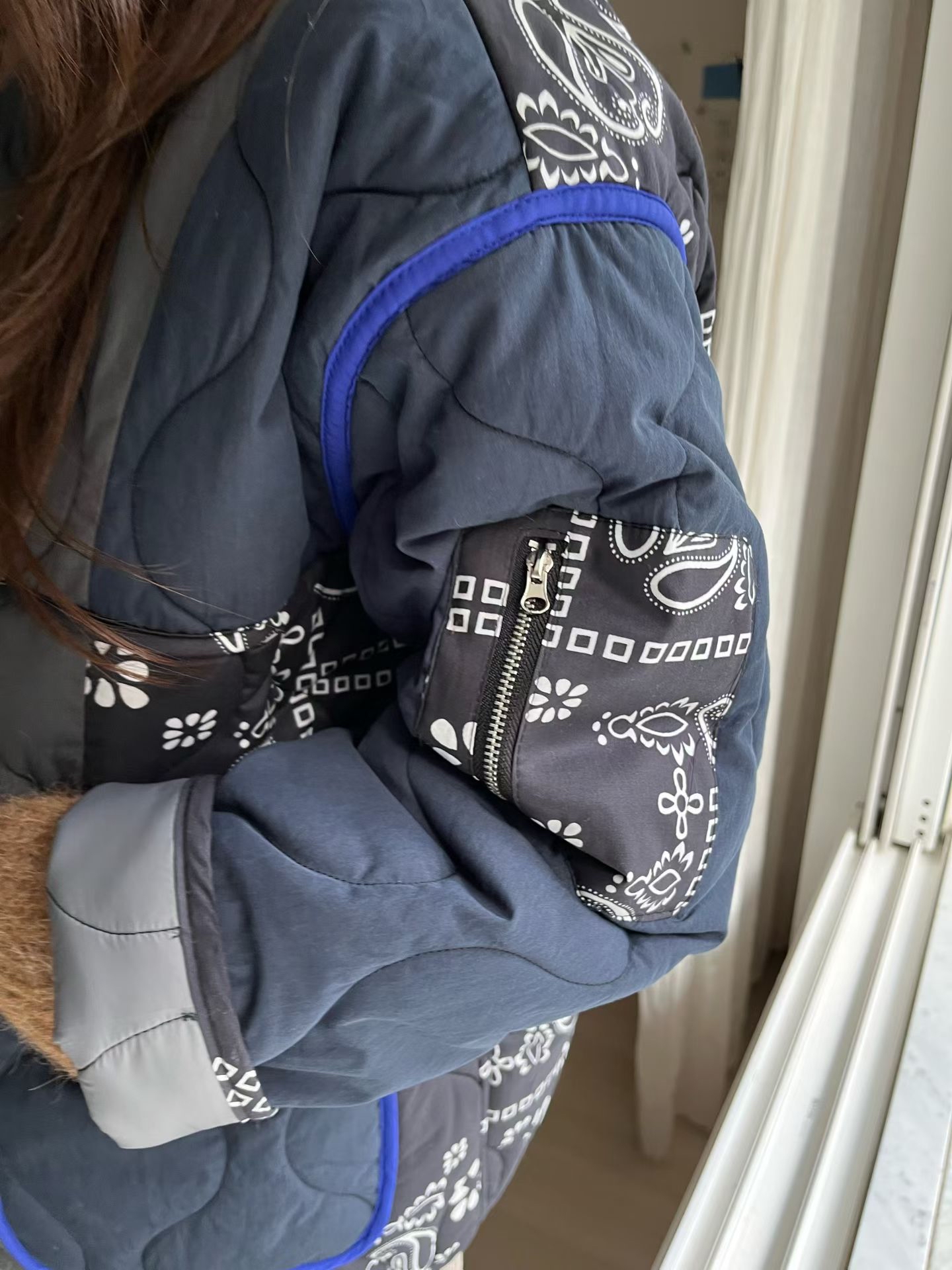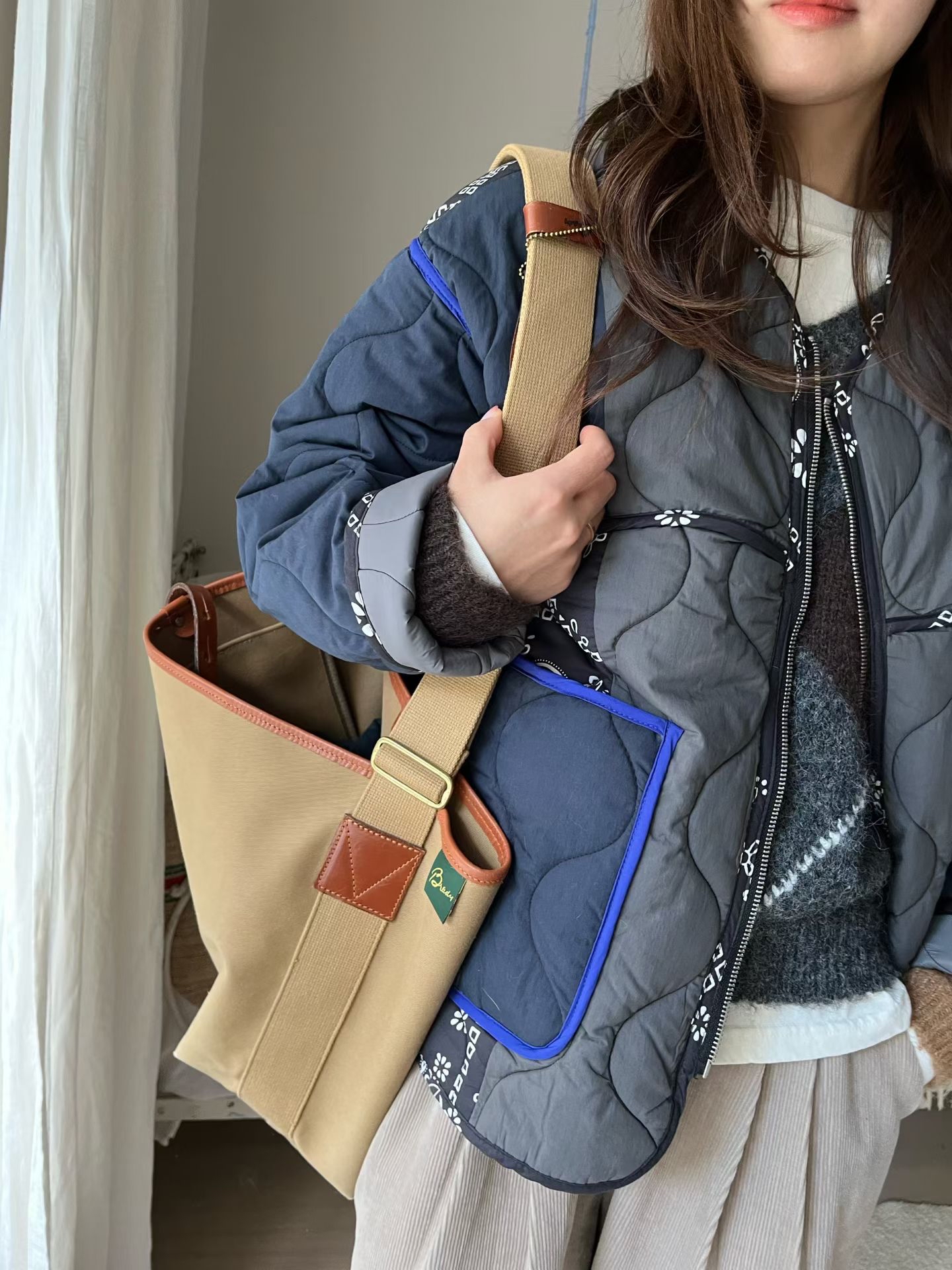 Made in Korea Color : navy 尺寸:F 混紡率:棉100% 拼接設計, 經過絎縫處理,既溫暖又輕便。 尺寸適中,穿著舒適,兩側口袋也很實用 採用拉鍊設計,非常方便 無論搭配在哪裏都很適合穿著 整個季候都可以穿
