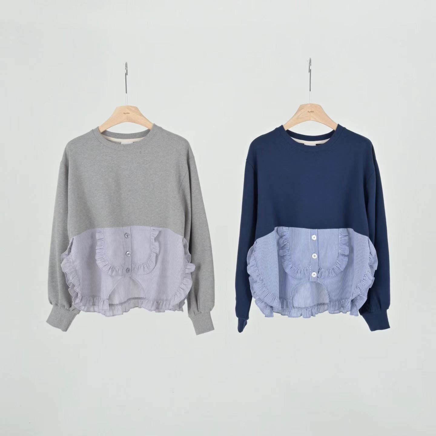 Made in Korea 上半身薄衛衣,下半伴併ruffle 條子恤 Şize 46”胸 25寸長